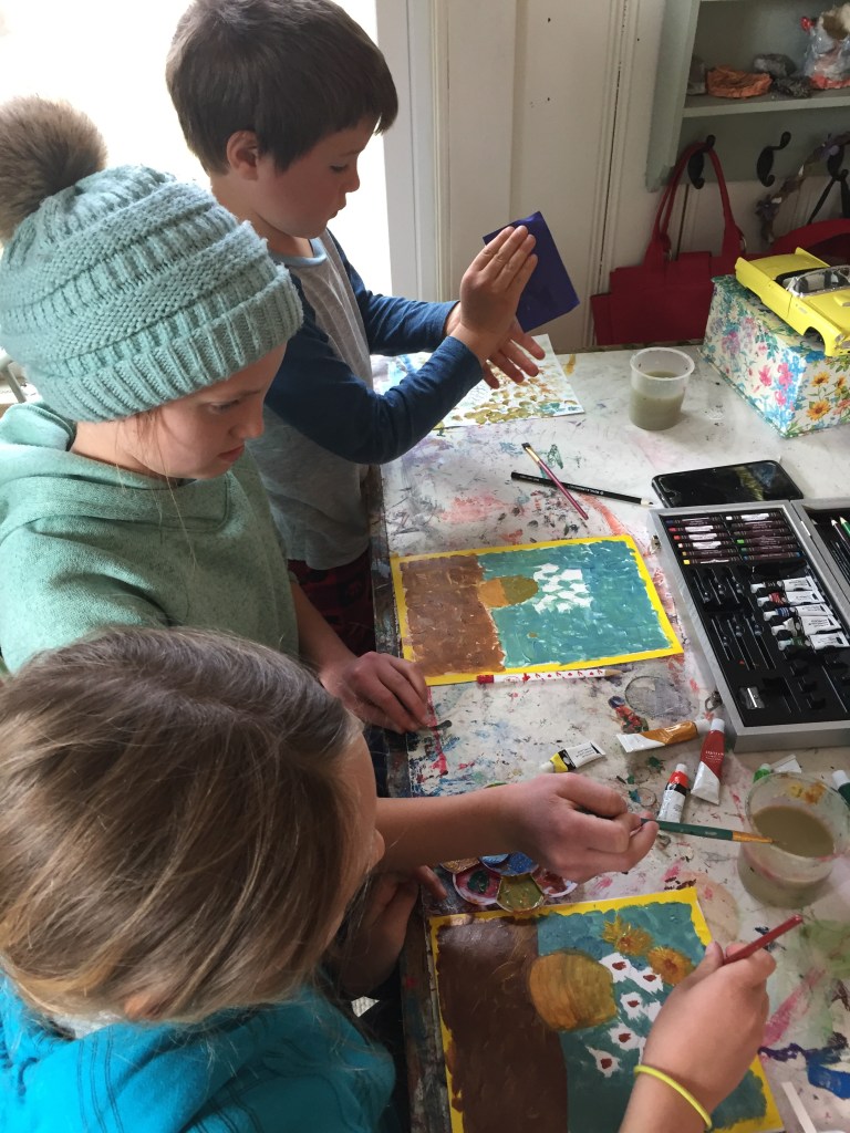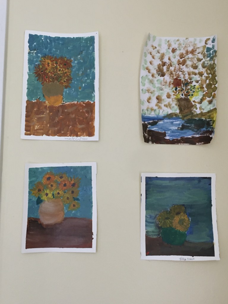 To bring a little color and beauty to our reading experience the kids painted sunflower pictures. Here’s a great link to a paint-along tutorial inspired by Van Gogh’s sunflowers.
