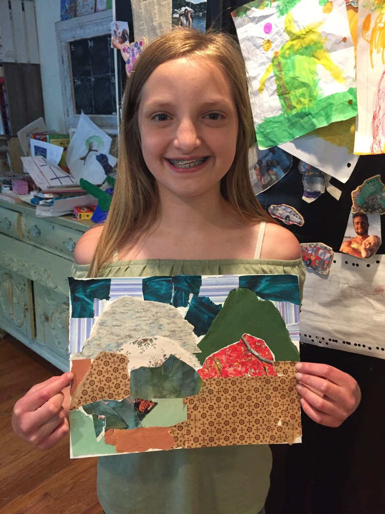 • Nature Art. Ava’s book club continued to meet throughout the year on zoom. The kids always have some lively discussions and do some creative crafts. For this book, the kids made mountain collages out of scraps of colorful paper inspired by the book’s message about the mountains and deforestation.
