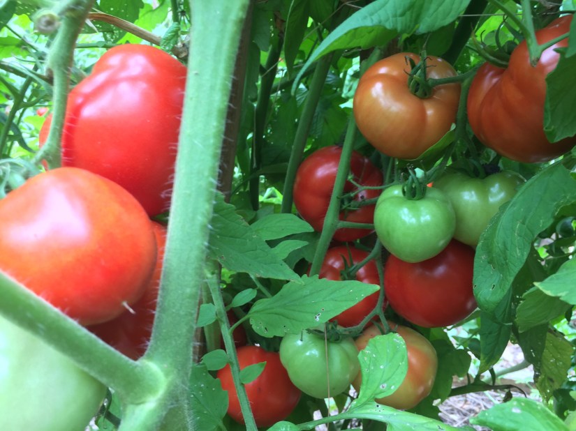 We planted numerous varieties of tomatoes this year; Brandywine heirlooms, Early girls, Sun Gold cherries, Fourth of July, Big Boy Brandywines, Plum tomatoes and lots of cherry tomatoes. Little did we know how prolific the plants would be and how good a growing season we would have. The kids and I are out there every day inspecting the tomatoes and gambling on which ones are ok to leave for tomorrow hoping the slugs and other small hungry visitors won’t eat them before we get to them. It’s a risk we’re not always willing to take, but Our tomato storage capabilities are reaching their max. I feel more and more like my Italian Nonna everyday as I care for my tomatoes with the tenderness I do my children and trays fill my house with upside down tomatoes spaced apart and covered with linens in order to prolong their lifespan. Like us, the tomatoes are also better off social distancing to insure their health and longevity.