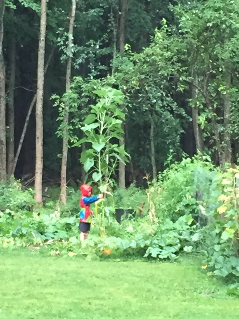 I couldn’t have been more proud of my farmer, then when he stood outside for twenty minutes holding up his sunflower during our mini-East Coast hurricane! He showed our family what a big heart and dedication looks like as he saved his 12 foot prize sunflower!