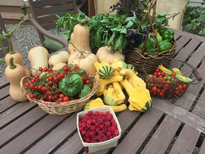 Aside from some raspberry worms, there has been so much to be grateful for. We have been getting creative and learning lots of new things with this years harvest; like how to cure butternut squash, how to pickle green tomatoes, how to dry green beans to use the beans inside soups, how to dry and preserve herbs and how if you’re not prepared, one cool 34 degree night can easily frost what’s left in your garden! New England weather is funny like that, you can be enjoying an Indian Summer and then out of nowhere it’s time for your fleece jackets and winter caps. Fortunately, all the tomatoes were picked and Ava and Vivi had a fine time picking every last little stem off of the hundreds of cherry tomatoes before we froze them!