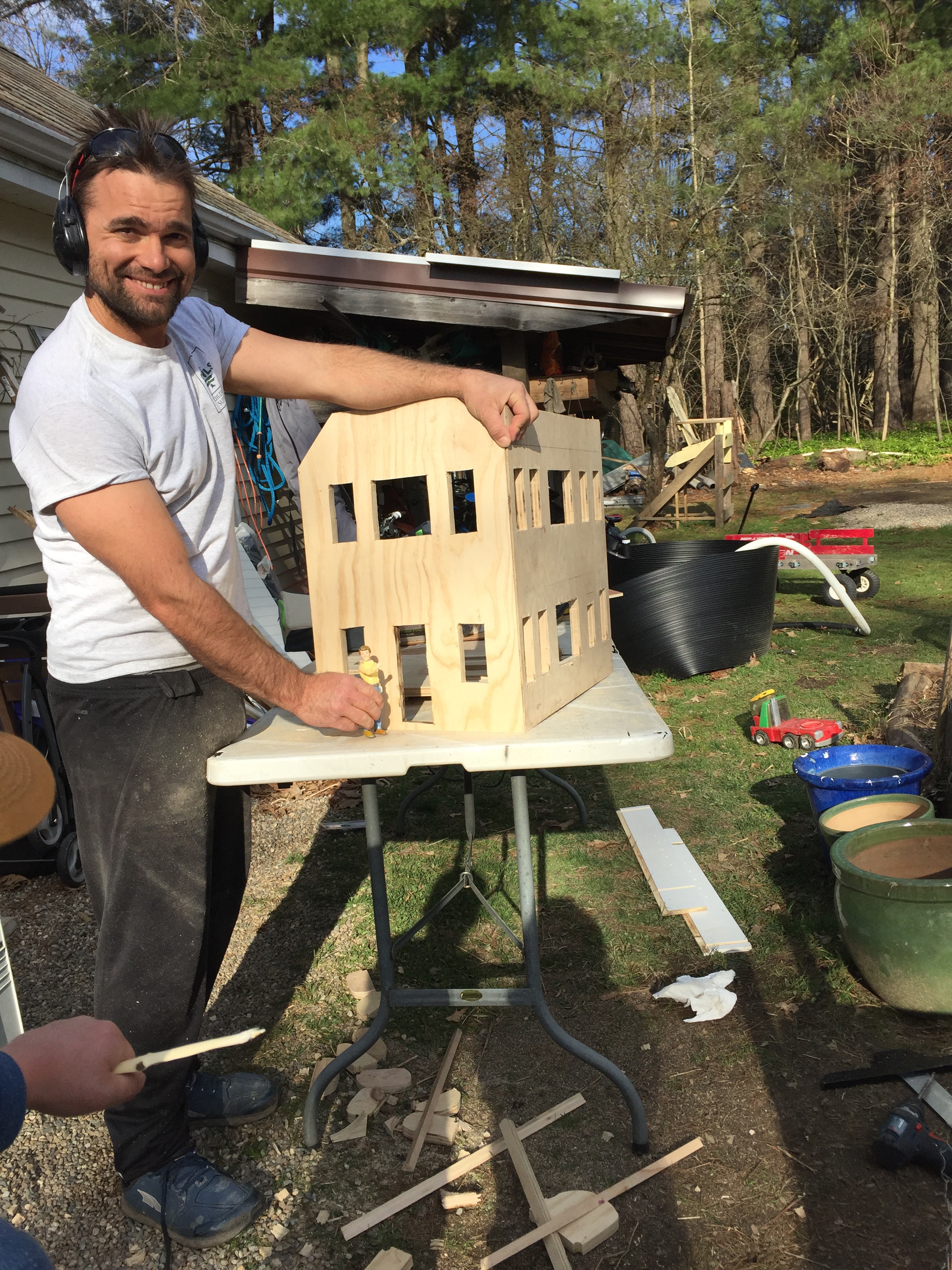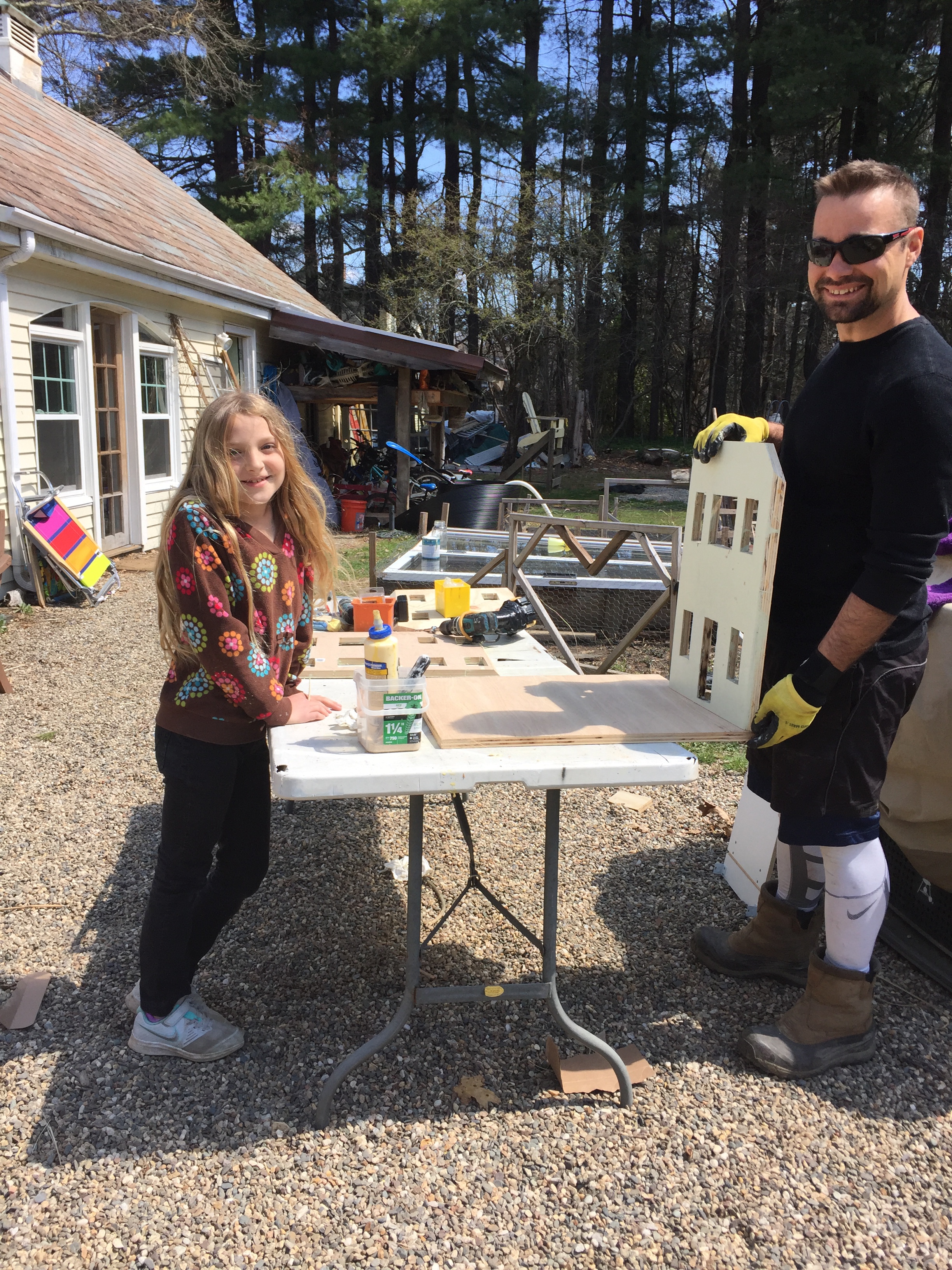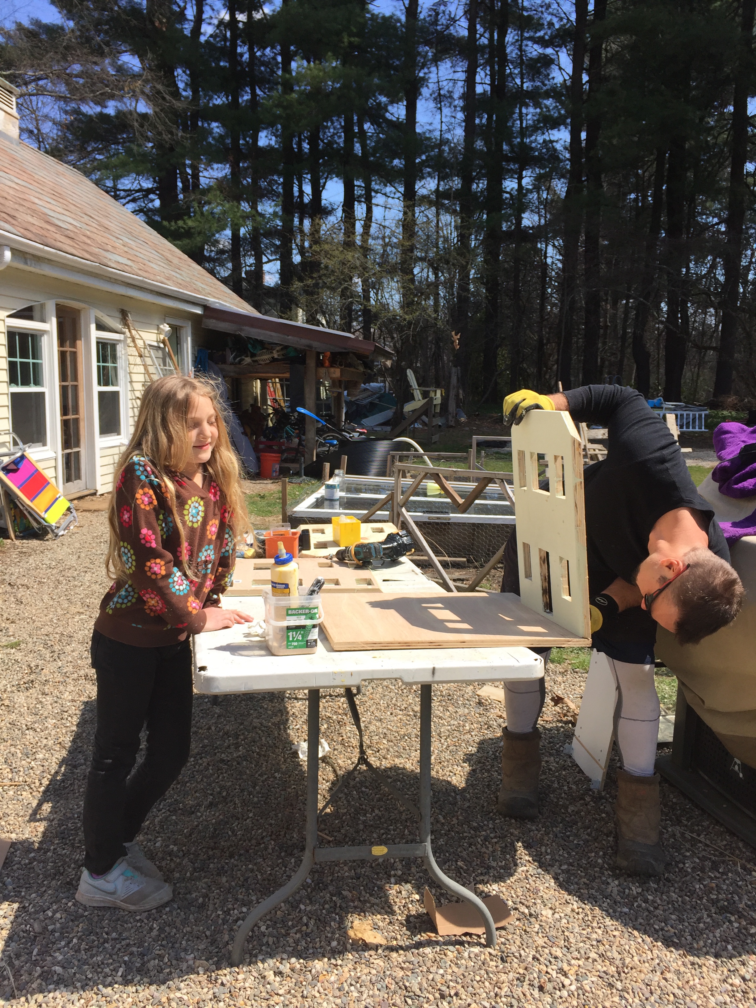 This series of pictures shows Lily and I working on her long anticipated Doll House. She had made a model out of cardboard and done such a great job building her own furniture and decorating the inside as well as the outside; she really inspired us to go to the next level.