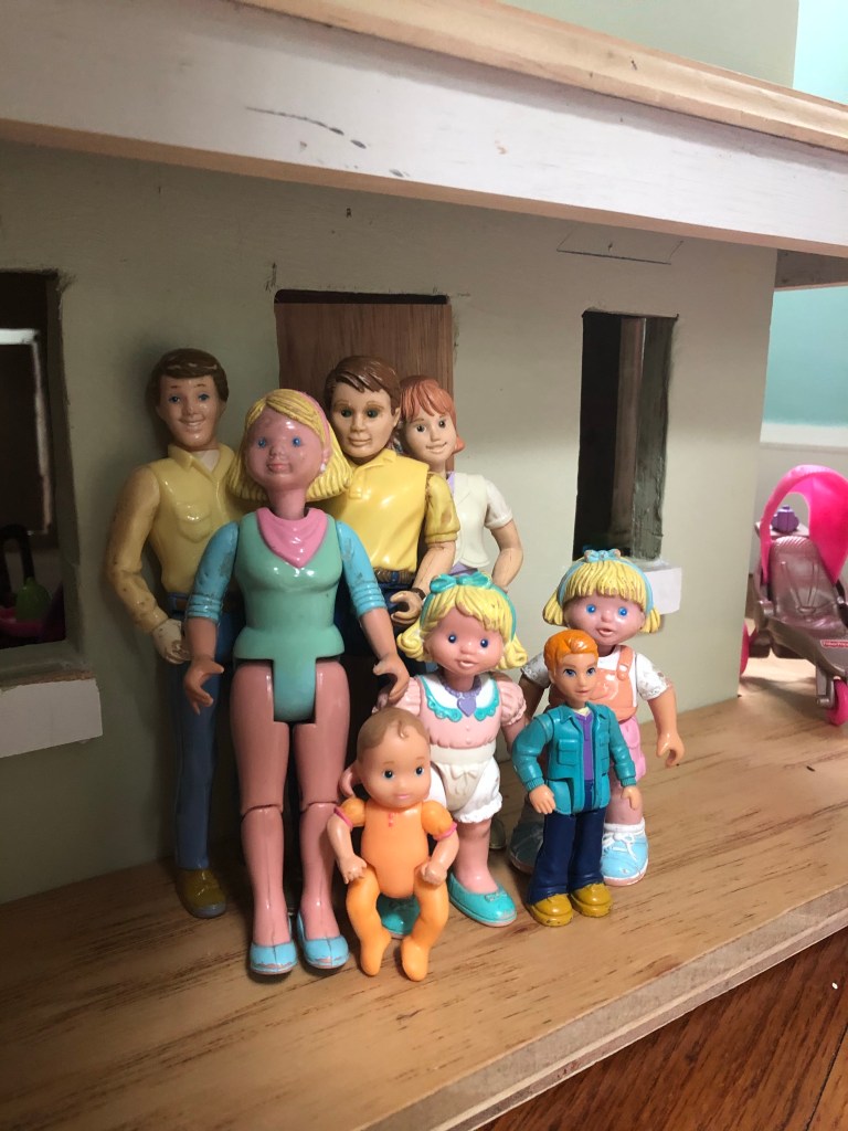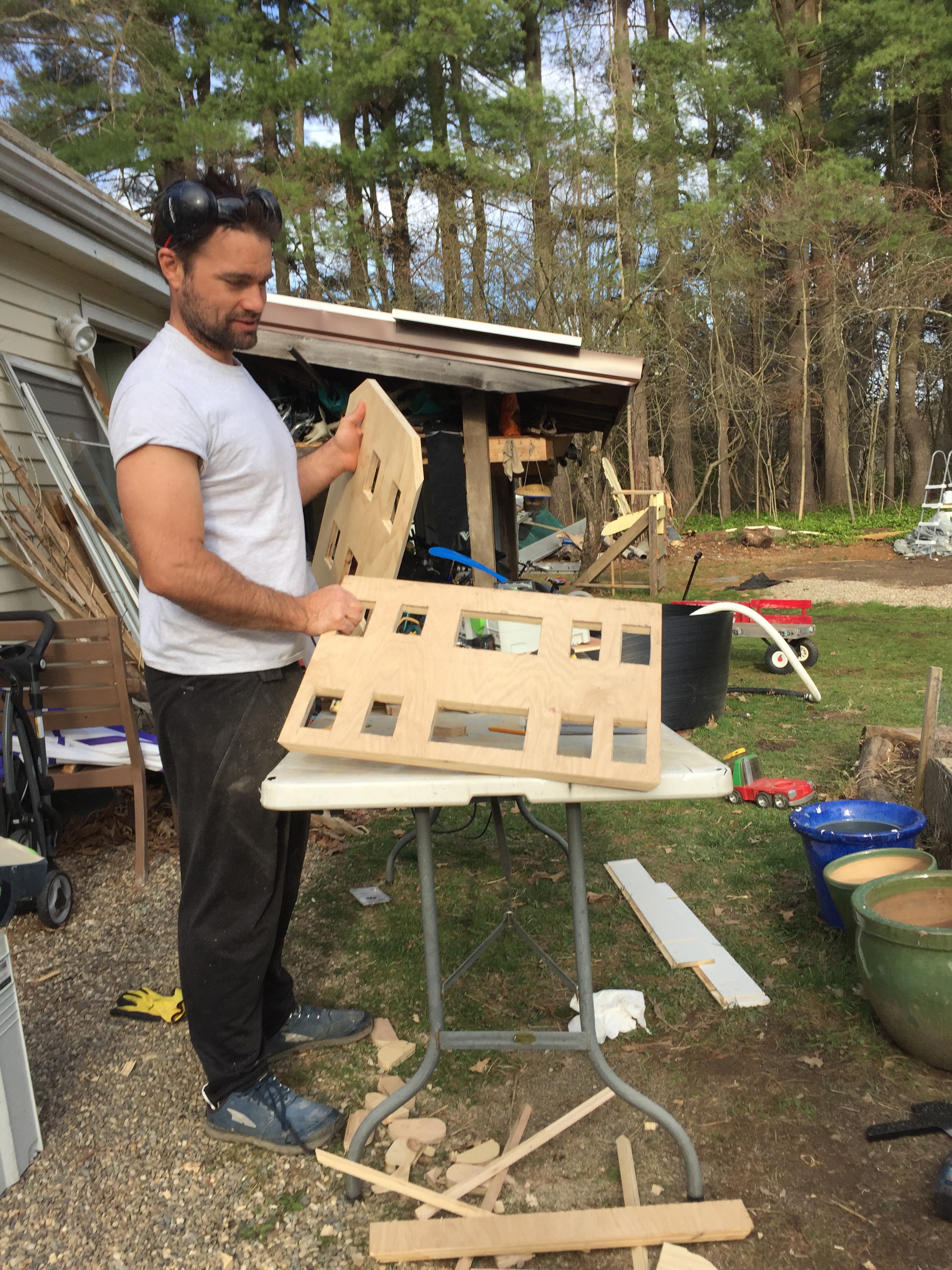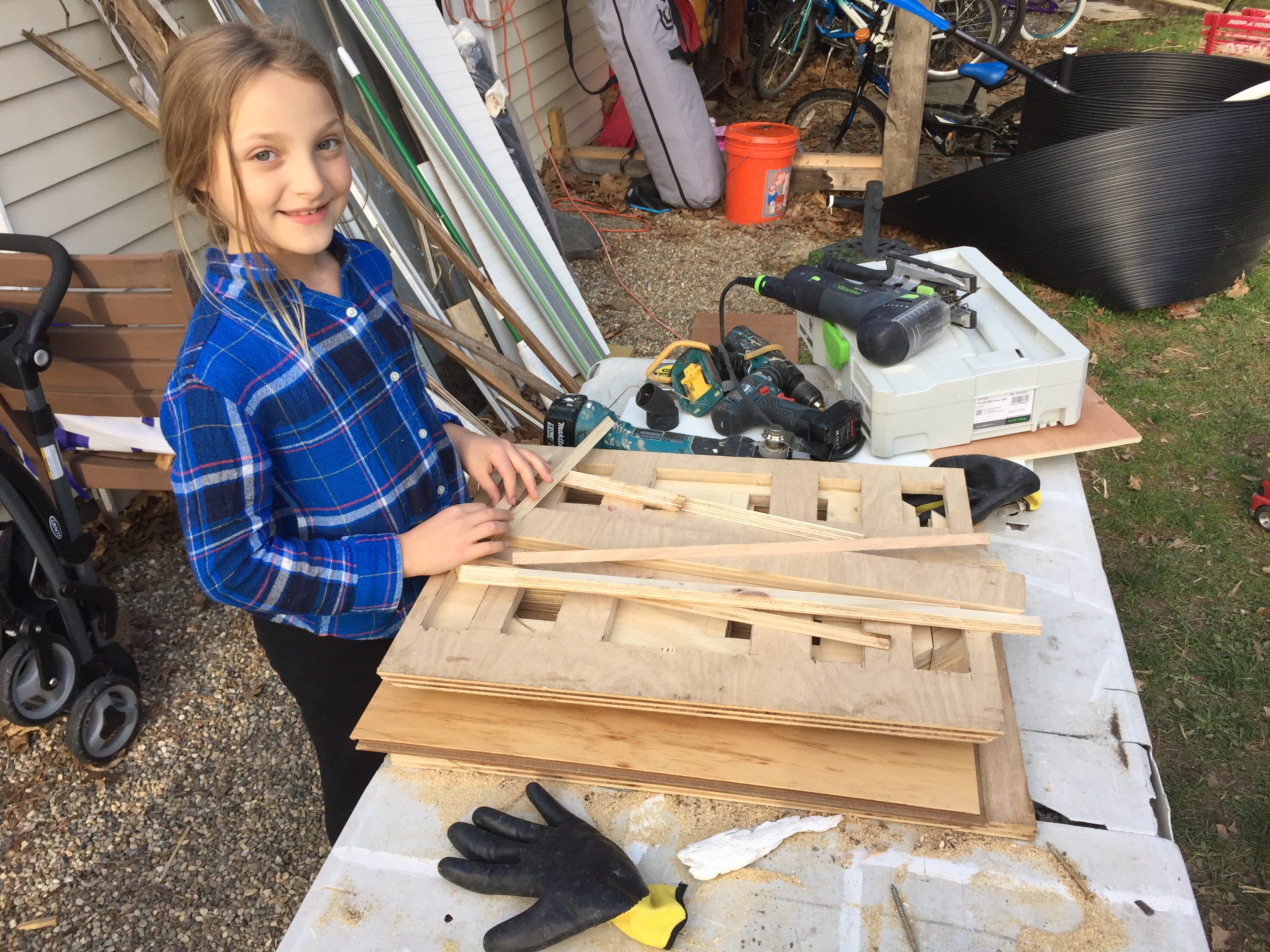 This series of pictures shows Lily and I working on her long anticipated Doll House. She had made a model out of cardboard and done such a great job building her own furniture and decorating the inside as well as the outside; she really inspired us to go to the next level.