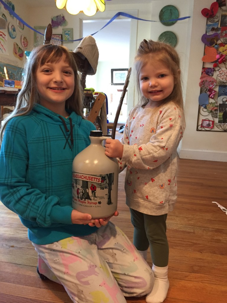 What started long ago, still carries on strong today. The hills of Western Massachusetts are dotted with Maple Sugar Shacks that come alive this time of year. It is amazing to visit these establishments and see how the sap is collected, stored and turned into syrup! Each year my kids have loved volunteering at a local Maple Sugar farm to help transport the sap down to the sugar house. They have learned so much about history and the hard work that goes into one gallon of Maple Syrup. Usually, about 40 gallons of sap are needed to make 1 gallon of maple syrup! That’s a lot of sap!